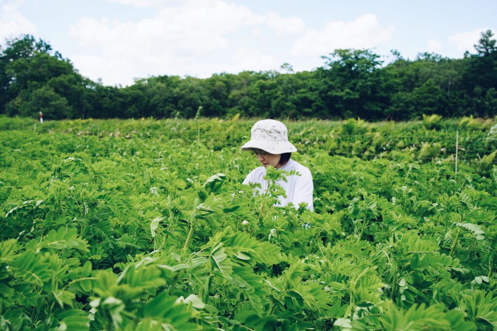 日向さんに会うために畑を訪ねてみましょう。活き活きと育つ緑豊かな薬草たちが迎えてくれます。季節によって作業はさまざま。タイミングが合えば収穫作業にも取り組むことができます。